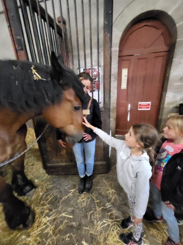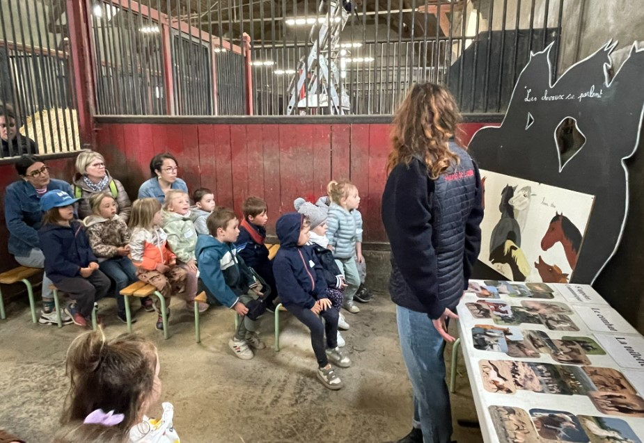 Nous avons commencé la journée par une démonstration équestre, petit spectacle “Cheval des cavernes” de 30 minutes dans le grand manège du Haras. Les élèves ont ensuite participé à différents ateliers :