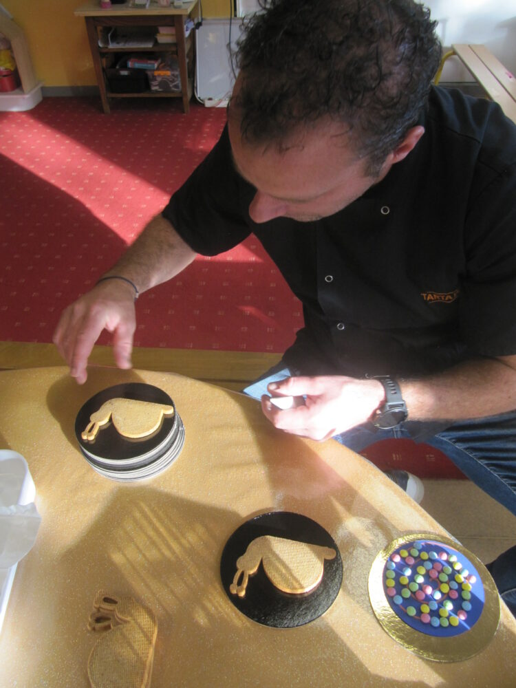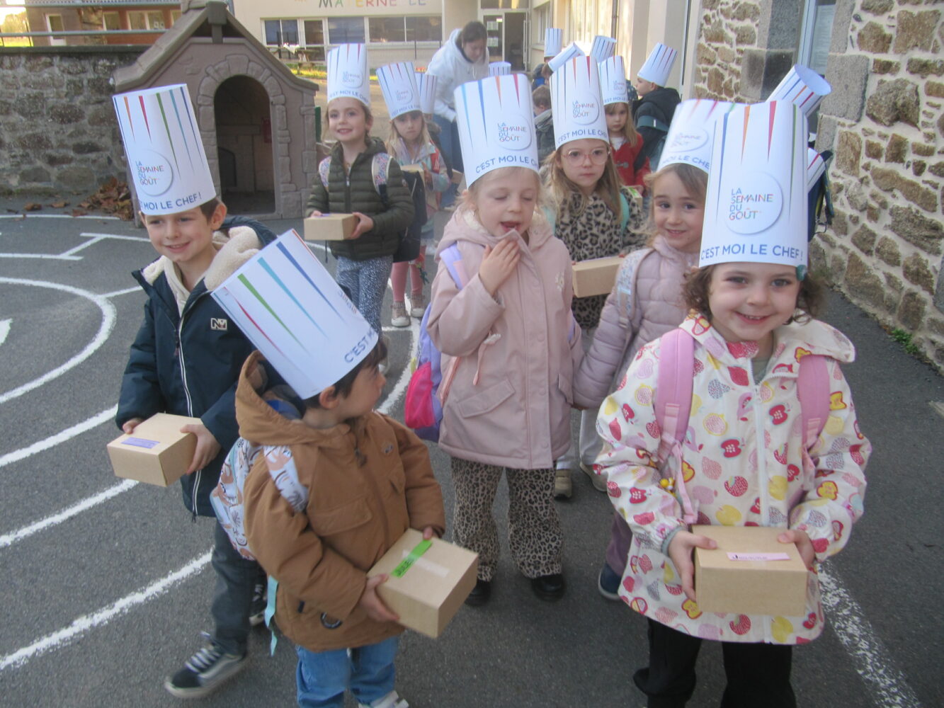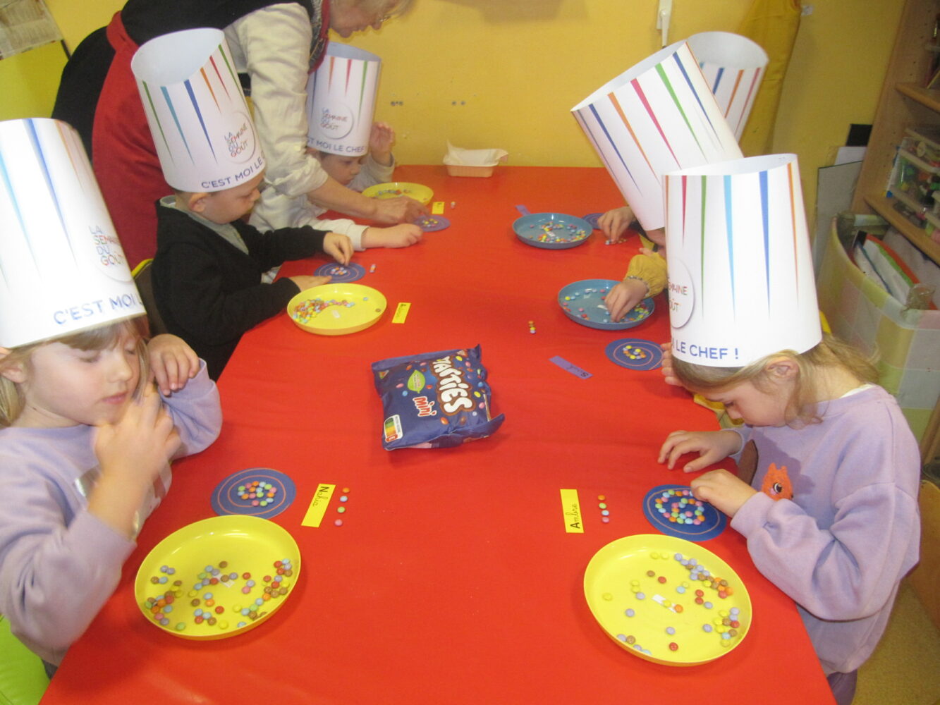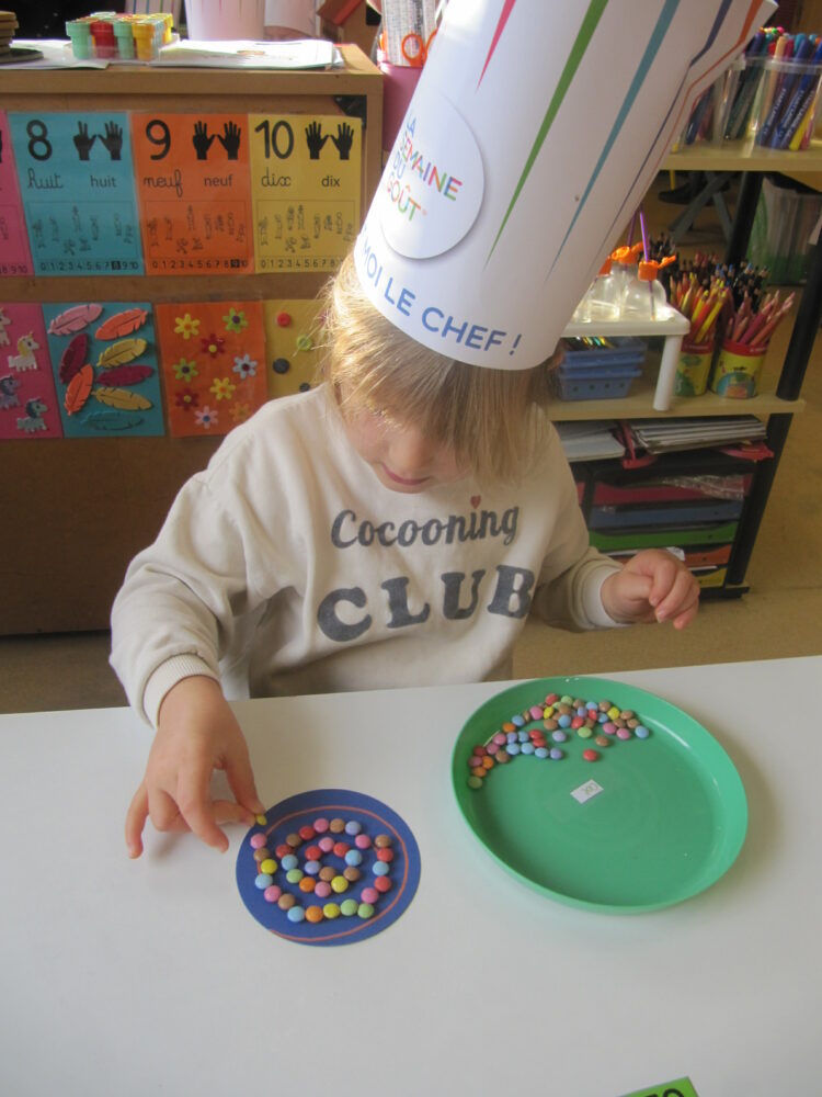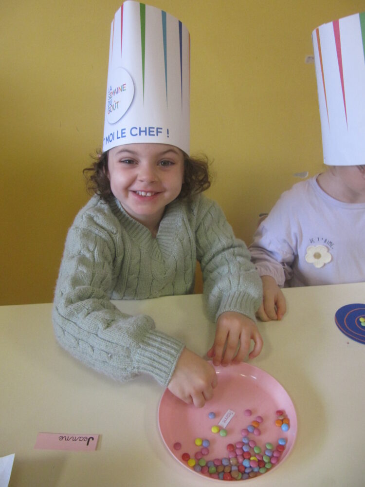 Dans le cadre de leur projet annuel intitulé “Une année à croquer”, les petites et grandes sections ont accueilli deux chefs pâtissiers Maxime et Romain pour un atelier sucré de saison : des petits escargots à croquer. Après avoir mélangé les ingrédients de la pâte sablée, Maxime a découpé des silhouettes escargots puis chaque enfant a décoré la spirale de sa coquille. Les petites sections devaient respecter la consigne “je change de couleur à chaque fois” et les grandes sections devaient réaliser un algorithme à 4 couleurs. Mission accomplie ! Bravo les pâtissiers en herbe et un grand merci à Maxime et Romain d’être venus nous partager leur savoir-faire !
