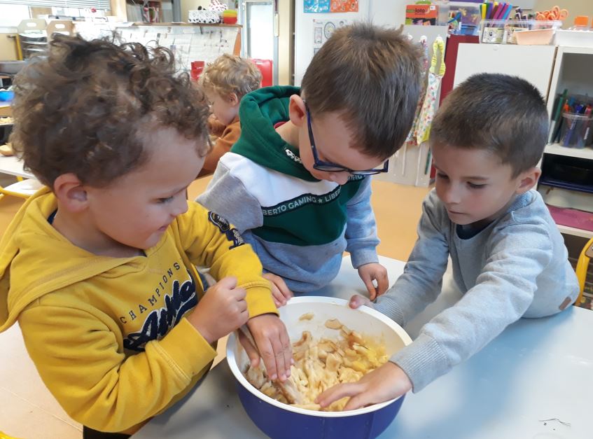 Nous aussi nous sommes partis à la recherche des pommes ! Nous en avons trouvé dans le verger ! Au sol, dans les pommiers, qu’elles soient petites, moyennes ou grosses ou encore vertes ou rouges, nous les avons ramassées puis nous les avons cuisinées en classe. De quoi ravir les gourmands !